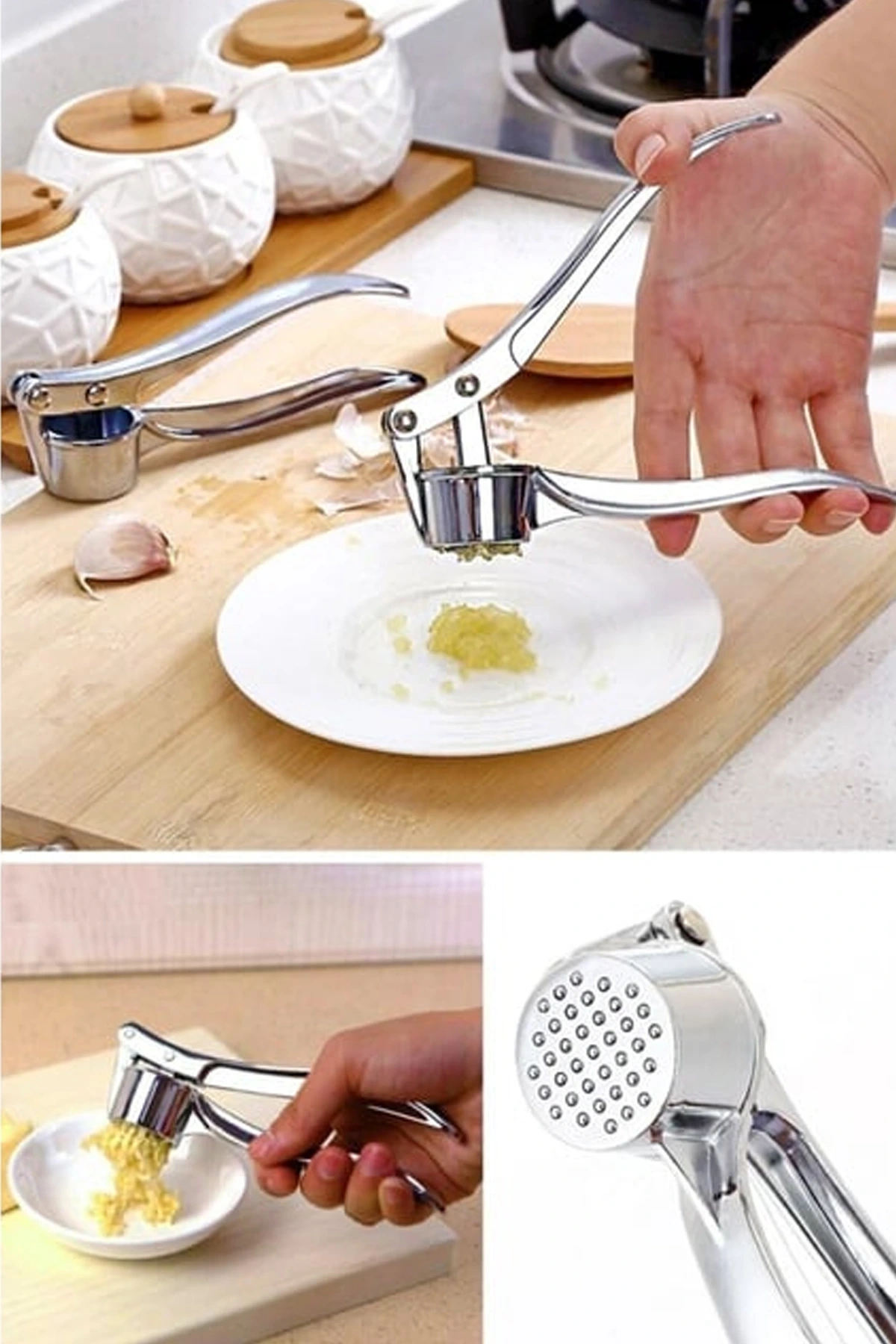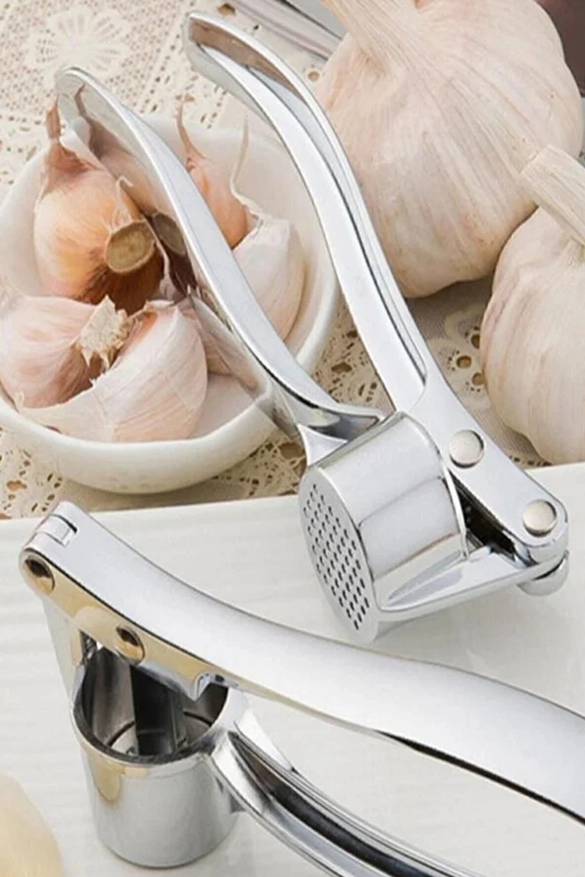 Çelik Sarımsak Ezici Yuvarlak Şekil Sarımsak Ezici Pres Hazneli Çelik Sarımsak Rendesi Sarımsak ezici pres ile sarımsakları kolayca ezebilirsiniz.