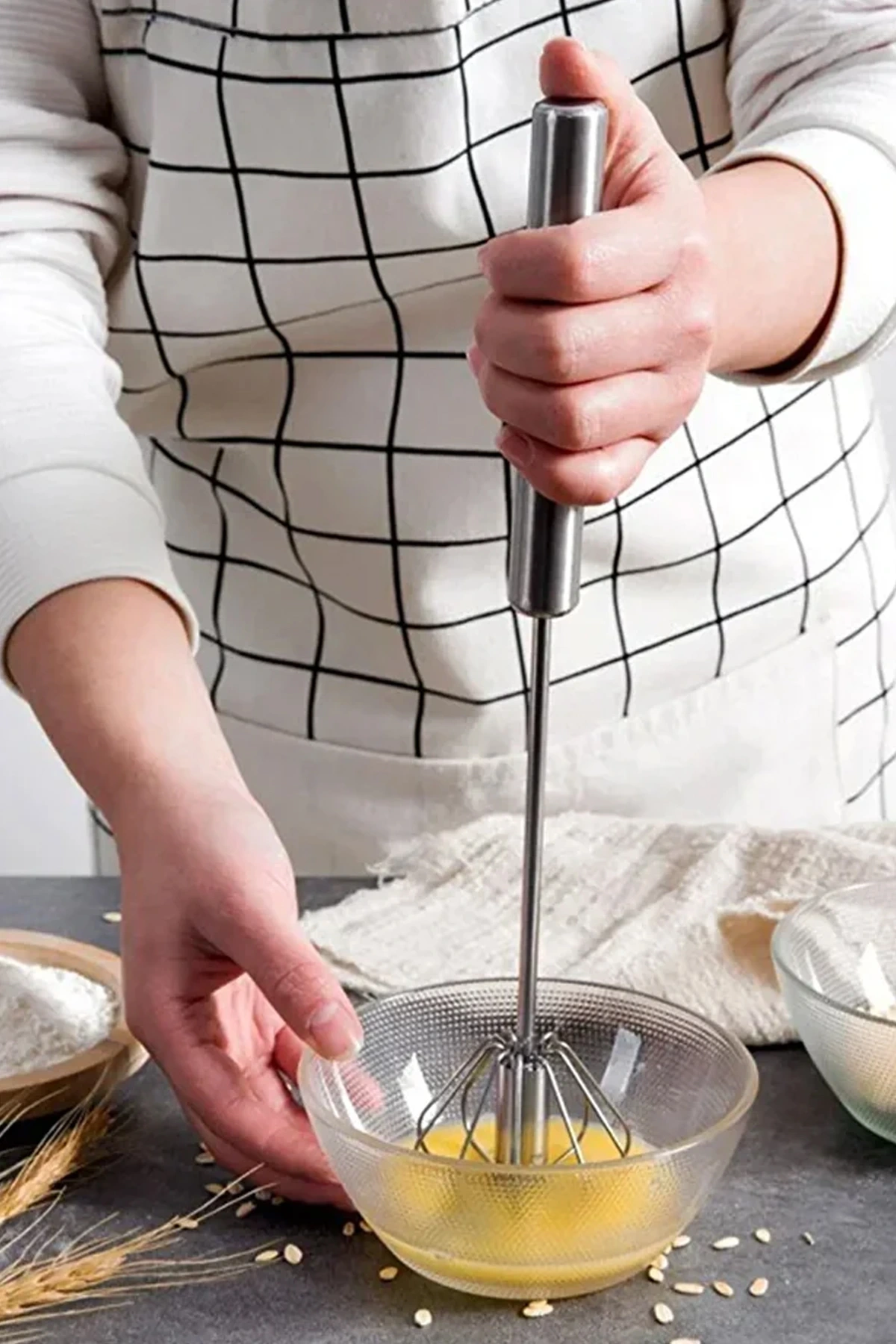 • Pratik Paslanmaz Çelik Basmalı Otomatik Çırpıcı Metal Çırpıcı 1 Adet Uzunluk 30cm