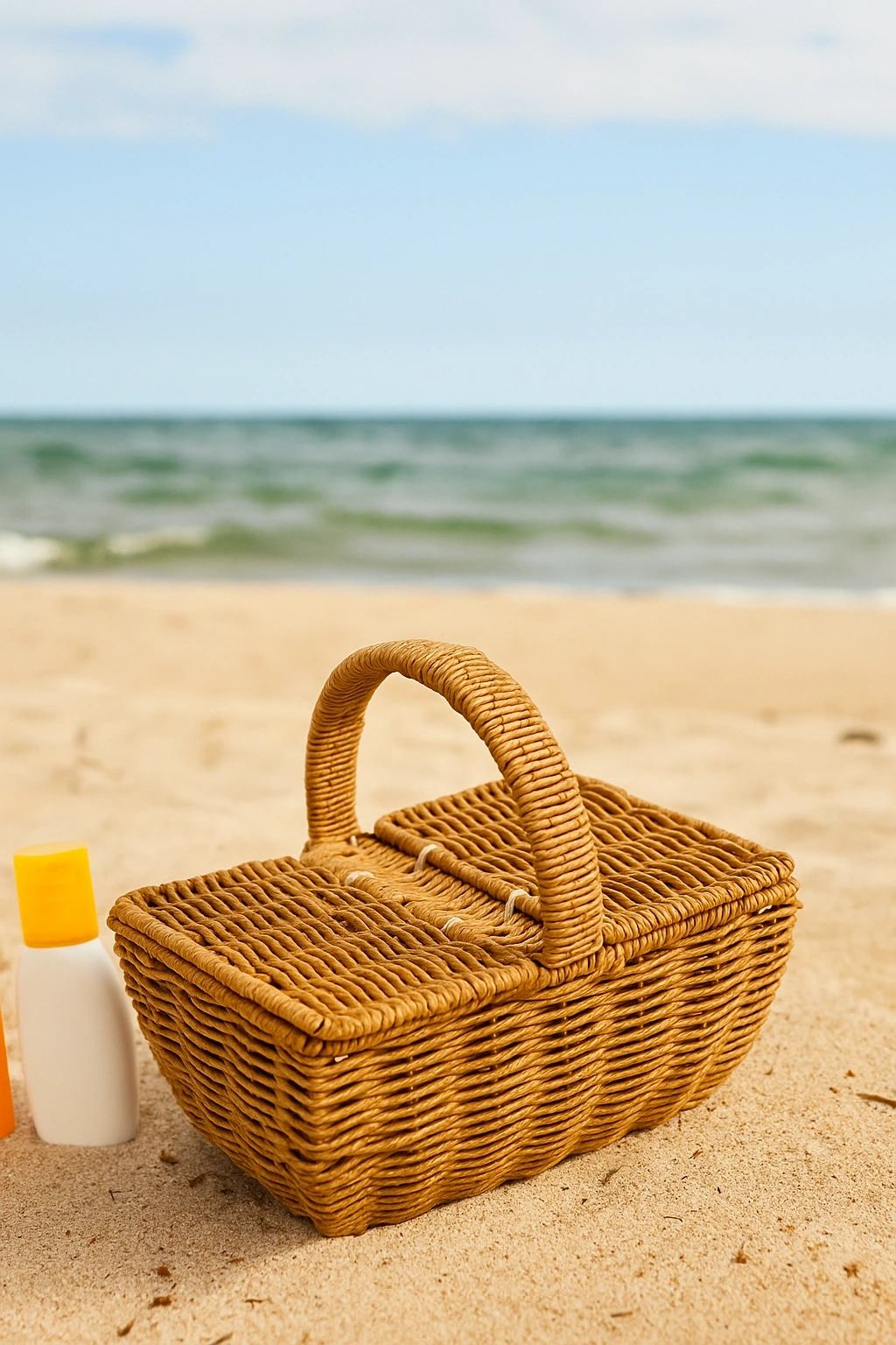 Doğal hasır görünümlü kapaklı piknik sepeti, hem şık hem de kullanışlı tasarımıyla açık hava etkinliklerinin vazgeçilmezidir. Dayanıklı örgü yapısı sayesinde uzun ömürlü kullanım sunar. Hafif ve kolay taşınabilir yapısı, piknik, plaj, kamp ya da doğa gezilerinde pratik bir kullanım sağlar. Kapaklı tasarımı sayesinde içindekiler güvenle taşınabilir. Doğal tonlardaki rengiyle her ortama uyum sağlar ve dekoratif olarak da kullanılabilir. Kahvaltılık, atıştırmalık veya kişisel eşyalarınızı düzenli bir şekilde taşımak için idealdir.