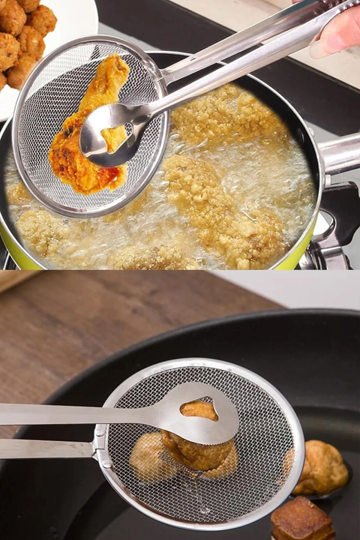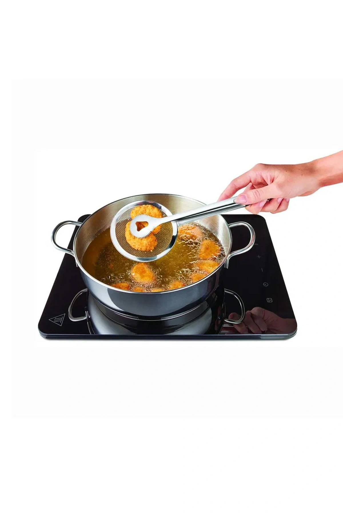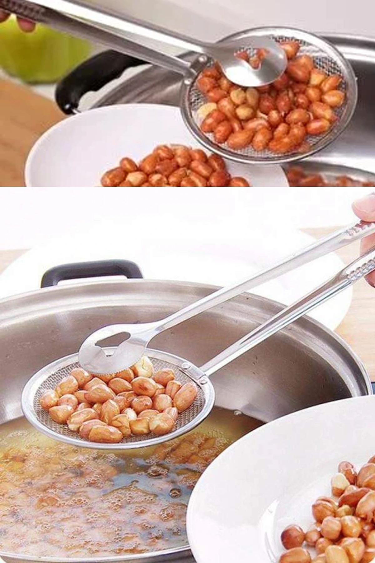 Kızartma veya haşlamalarda kullanabileceğiniz pratik süzgeçli maşa.