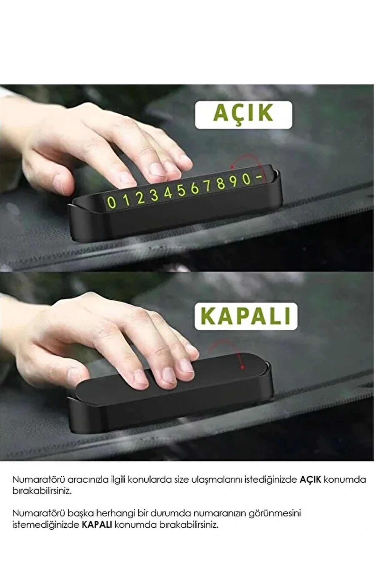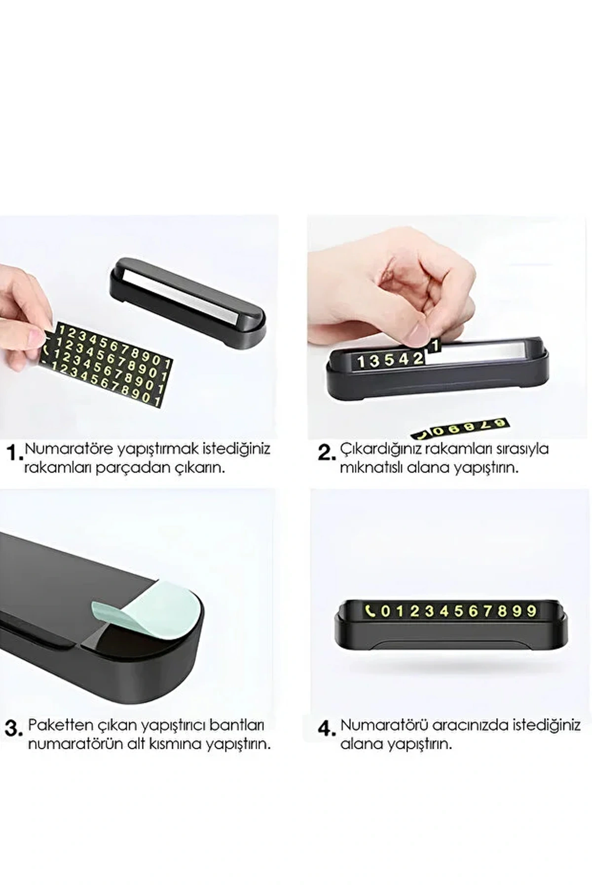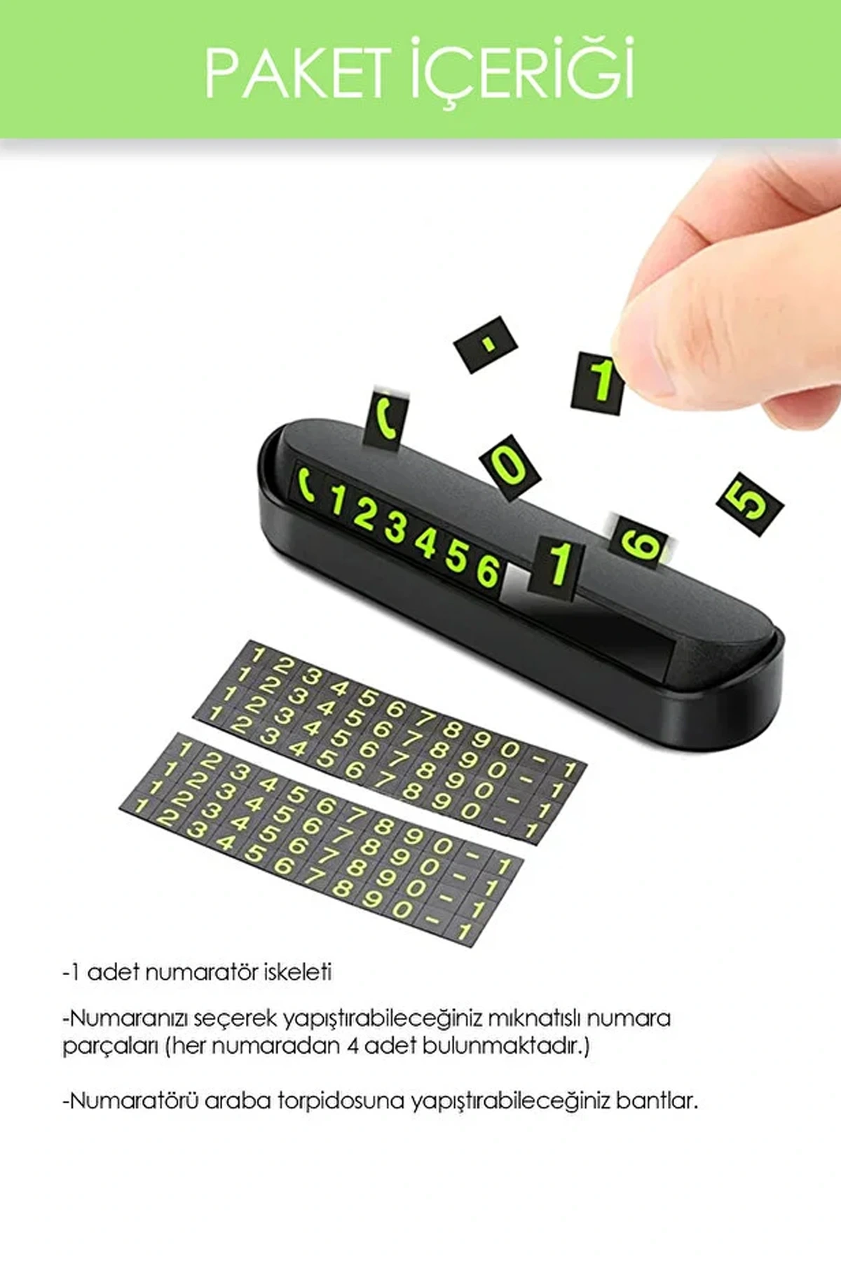 AÇILIP KAPANABİLEN PARK NUMARATÖR - Telefon numaranızı paket içerisindeki numaralar üzerinden oluşturarak, mıknatıs özelliği sayesinde tablaya yapıştırabilirsiniz.