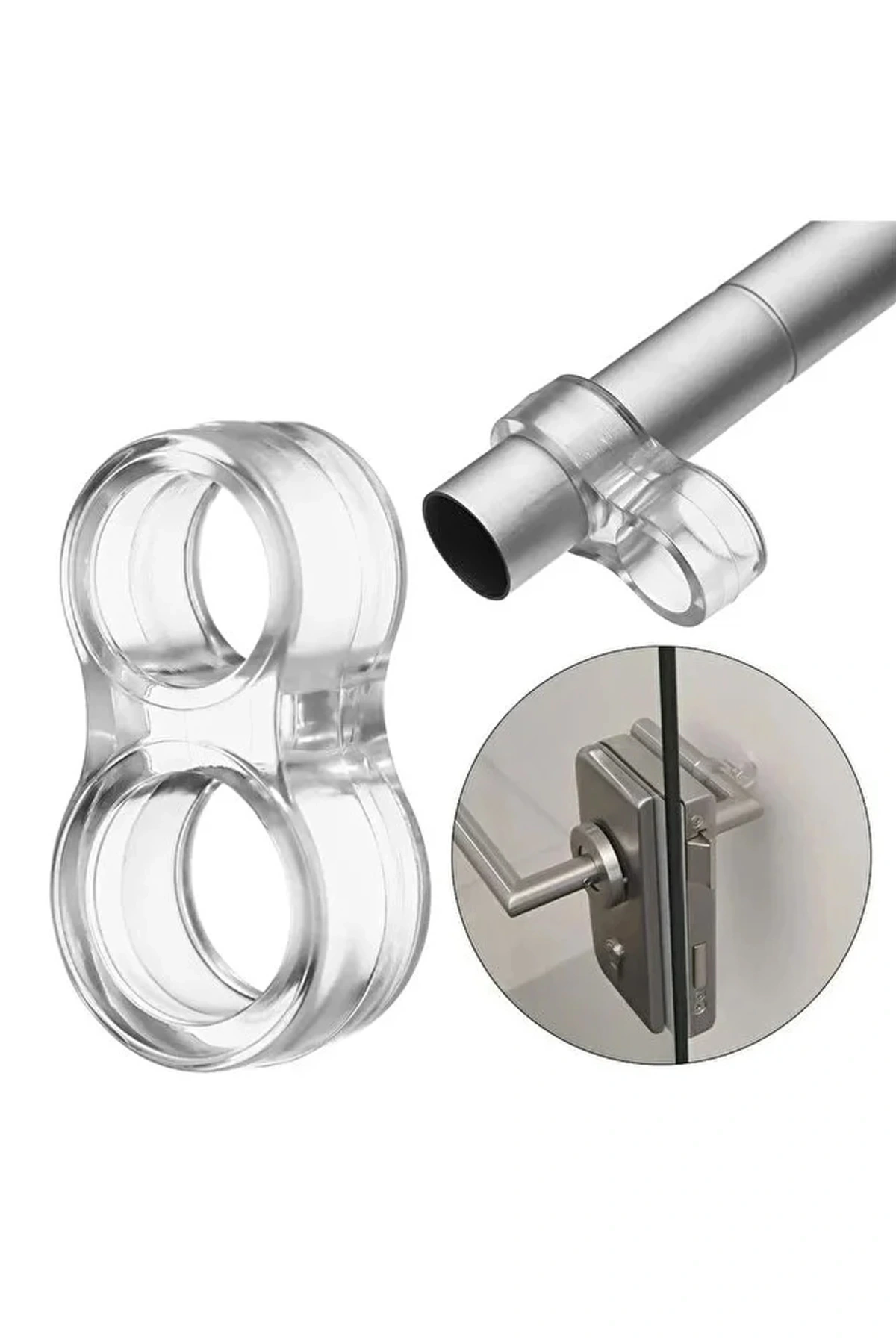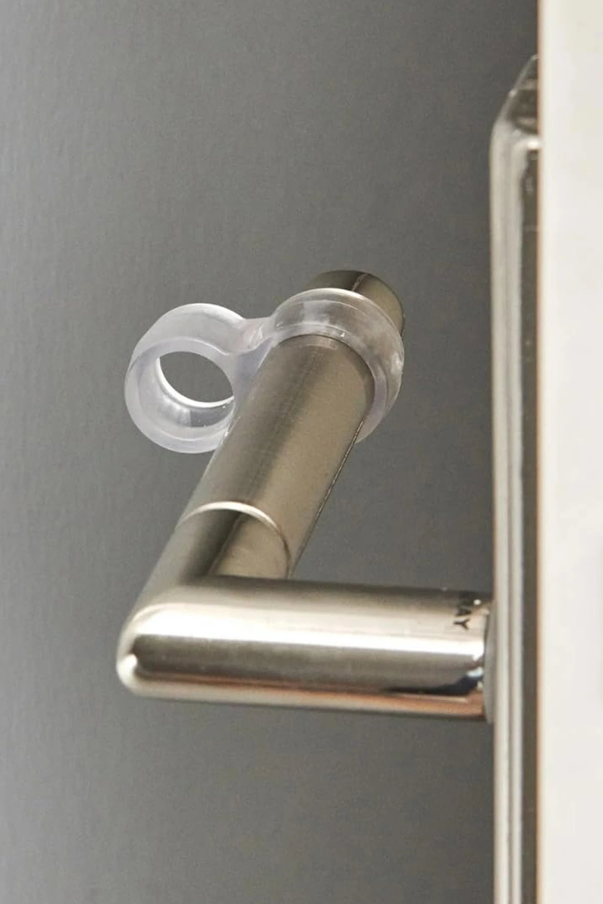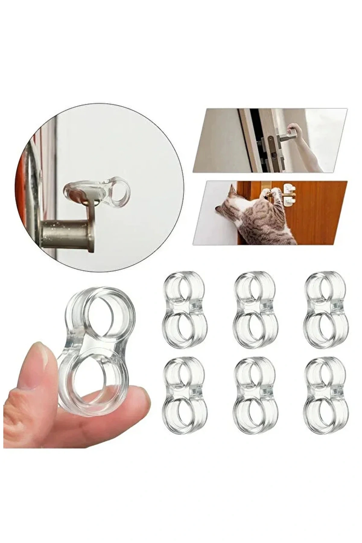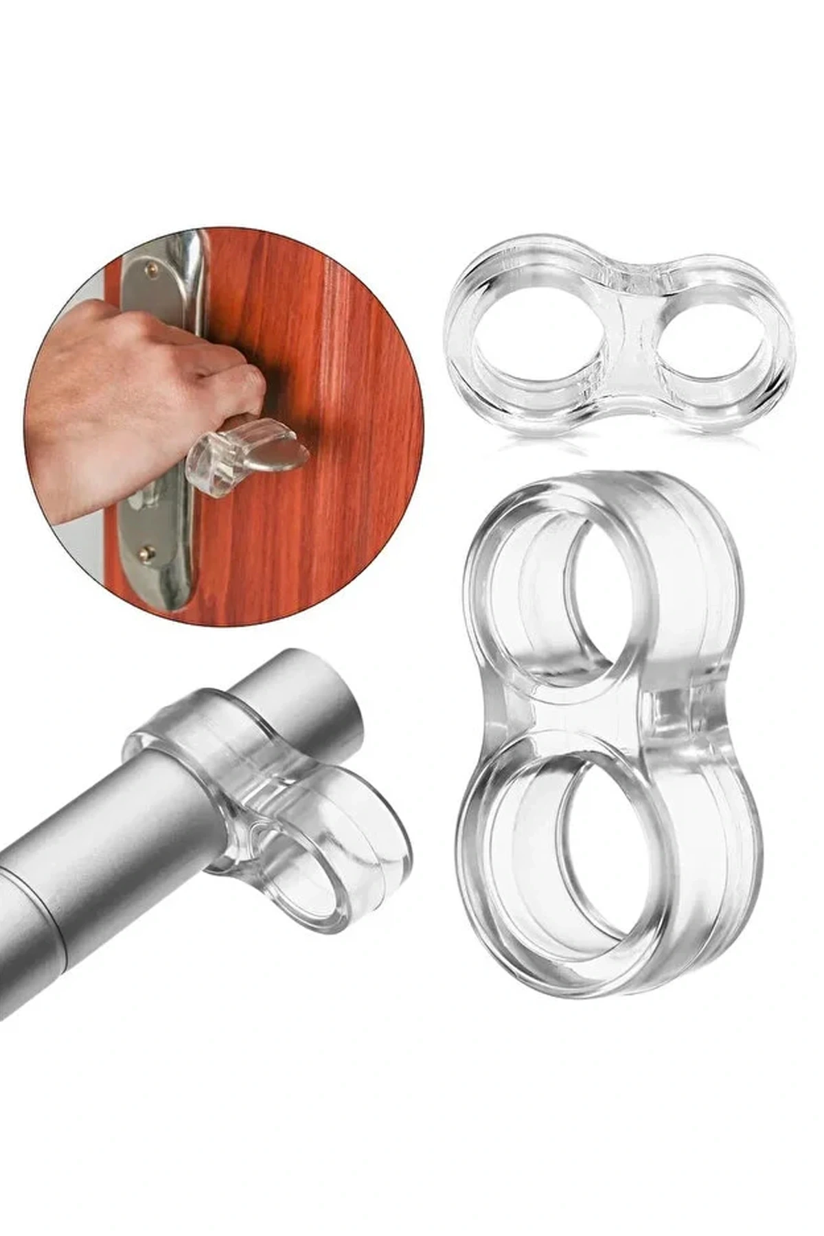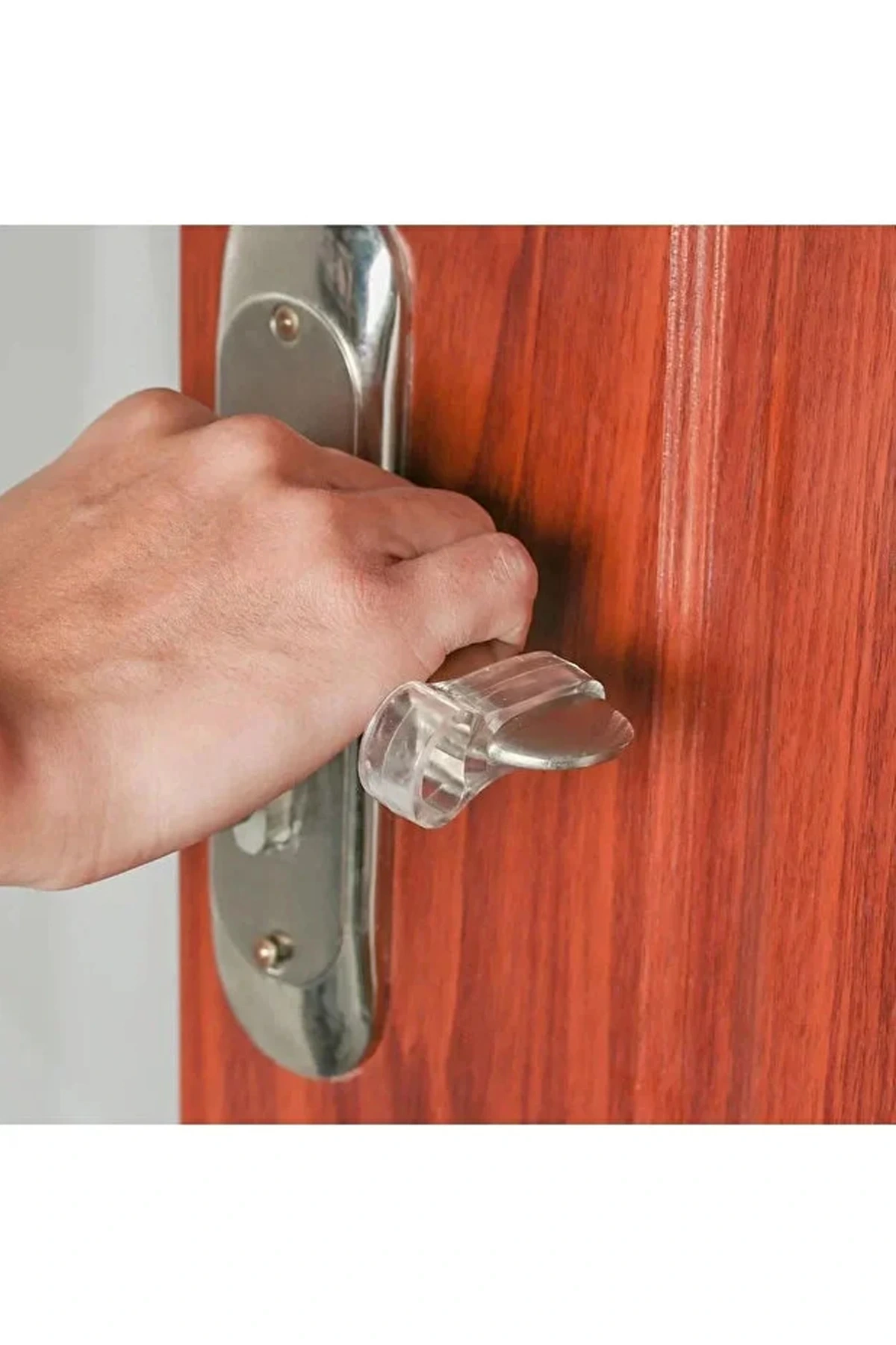 Şeffaf kapı stoperini sıcak suda 5 dakika beklettikten sonra esneterek kapı koluna takabilirsiniz.